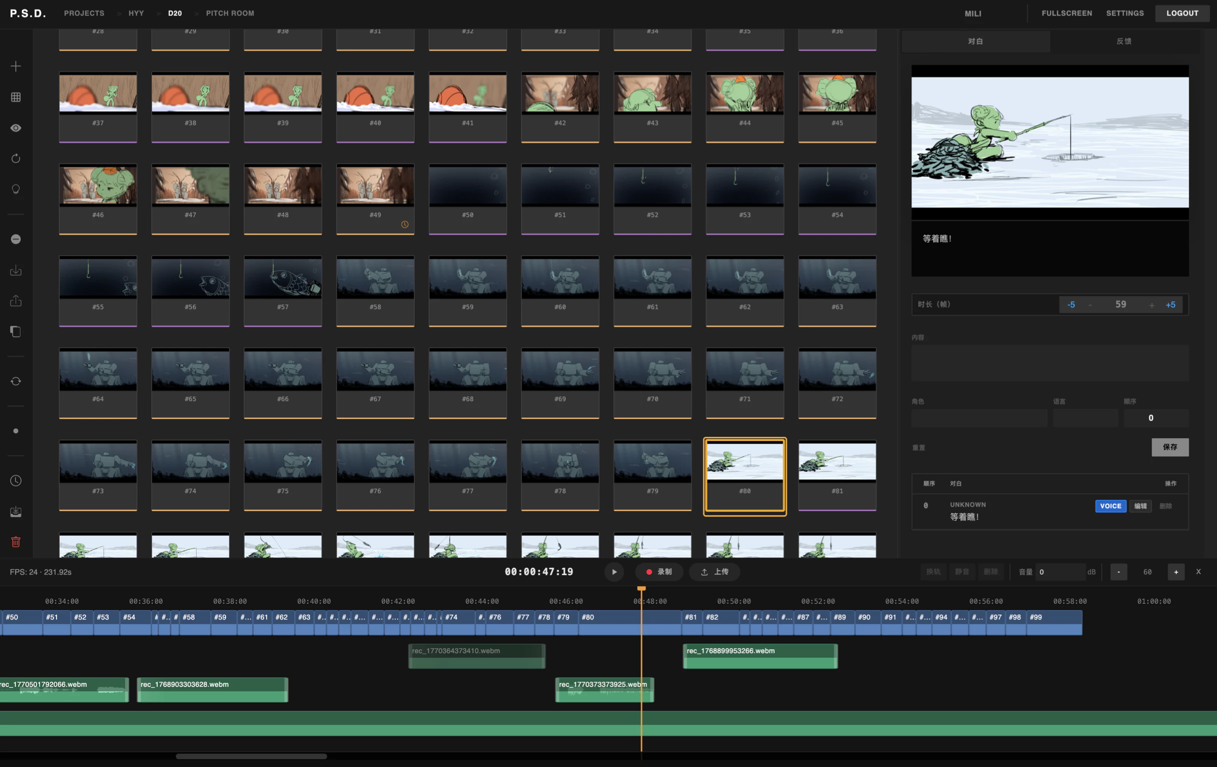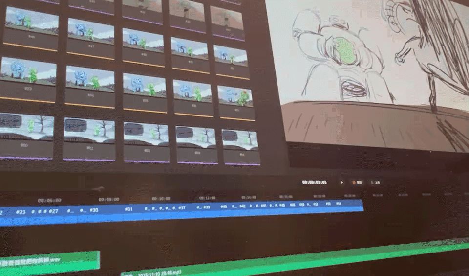 分镜艺术家轻松上传,修改分镜序列,调整顺序,管理镜头,台词,以及粗剪并添加配乐
